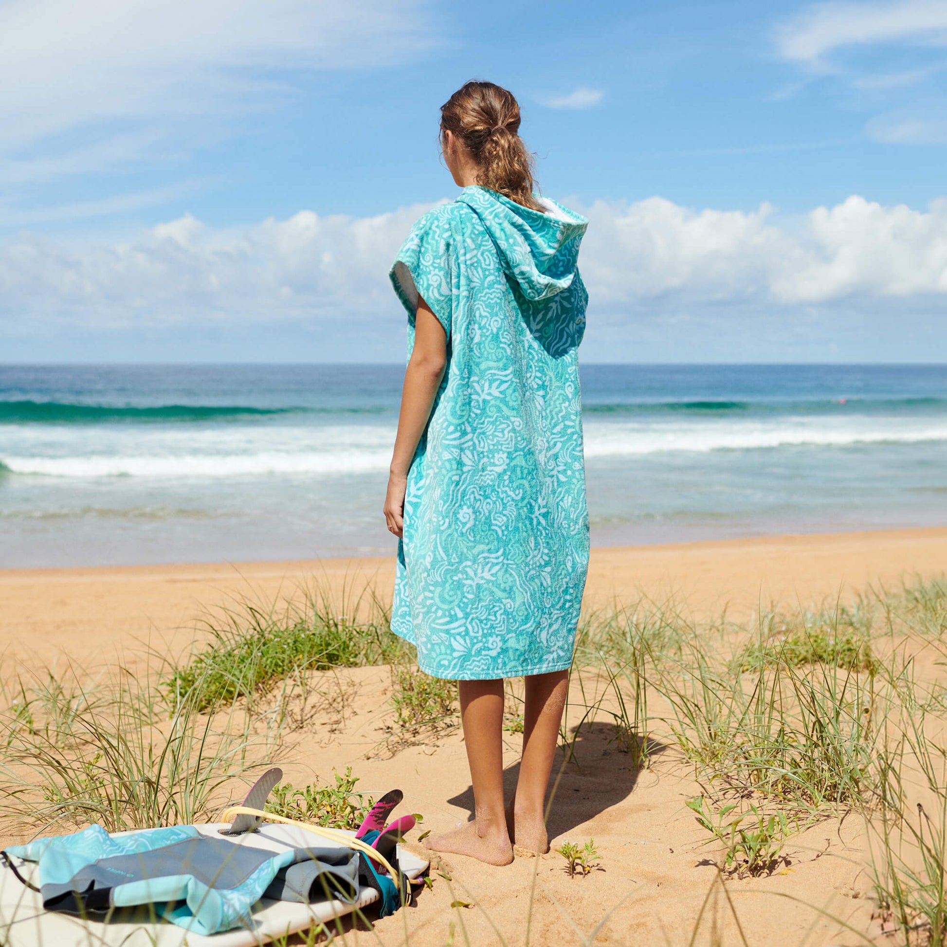 The Girls Bahia changei towel with print is designed to allow you to easily get changed discretly while keeping warm. A perfect addition to every surfer and beach enthusiasts kit.