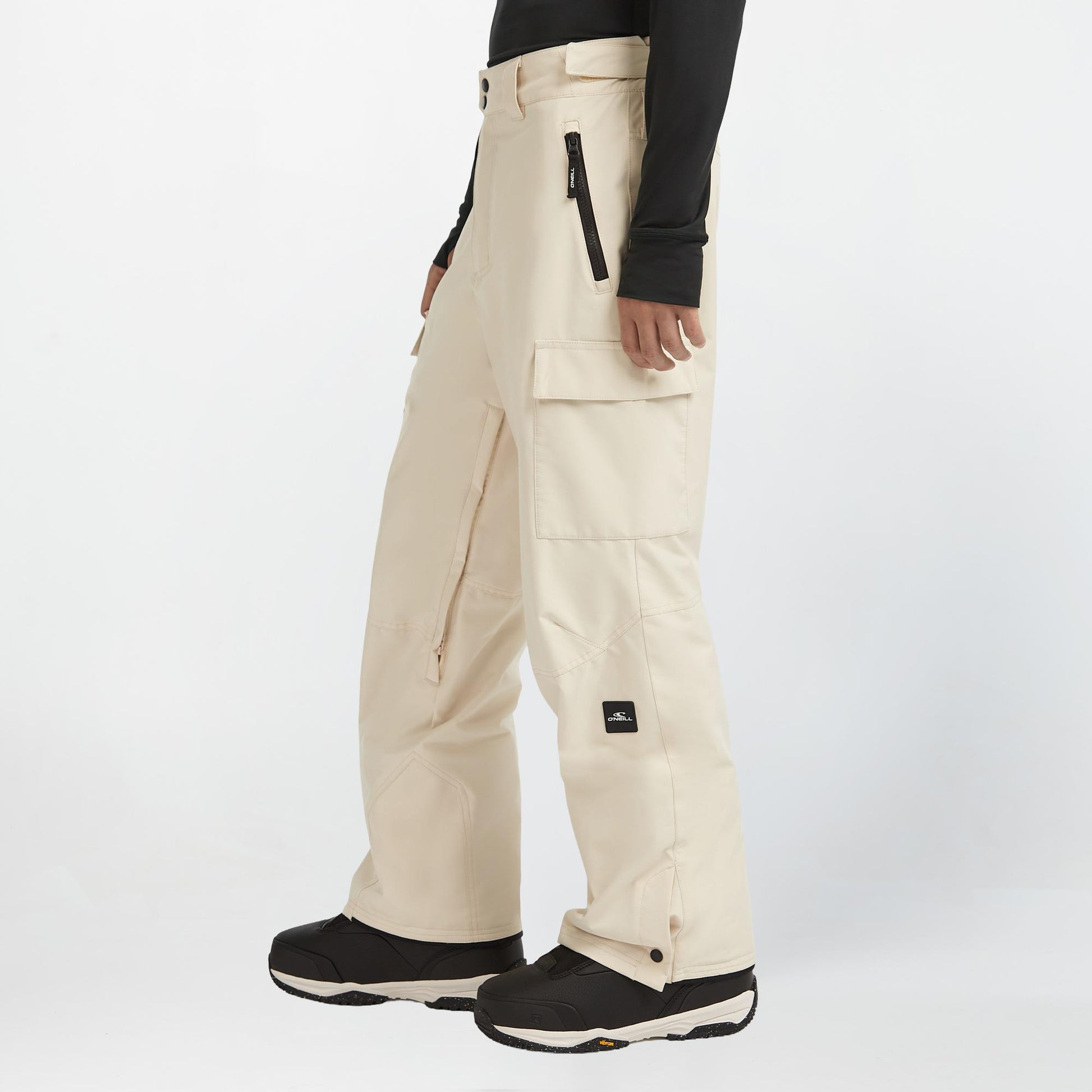 Ready to ride. The loose-fit FWC'Cruz Cargo Snow Pants deliver unrestricted movement and all-weather protection. Made with 50% recycled REPREVE® polyester, the tech-stretch fabric moves with you, while 10K waterproofing and 10K breathability in combination with a PFC-free, water-repellent coating guarantee all-day comfort. A jacket-pants connector system, snow gaiters, and hem maximiser lock the elements out, and leg venting allows air to flow when the session heats up. Zipped side pockets and cargo patch pockets complete these snow pants by dialling up the functionality. Plus, they include an easy-to-use repair patch, extending the lifespan of your gear so you can enjoy your playground longer. Designed for both skiers and snowboarders.