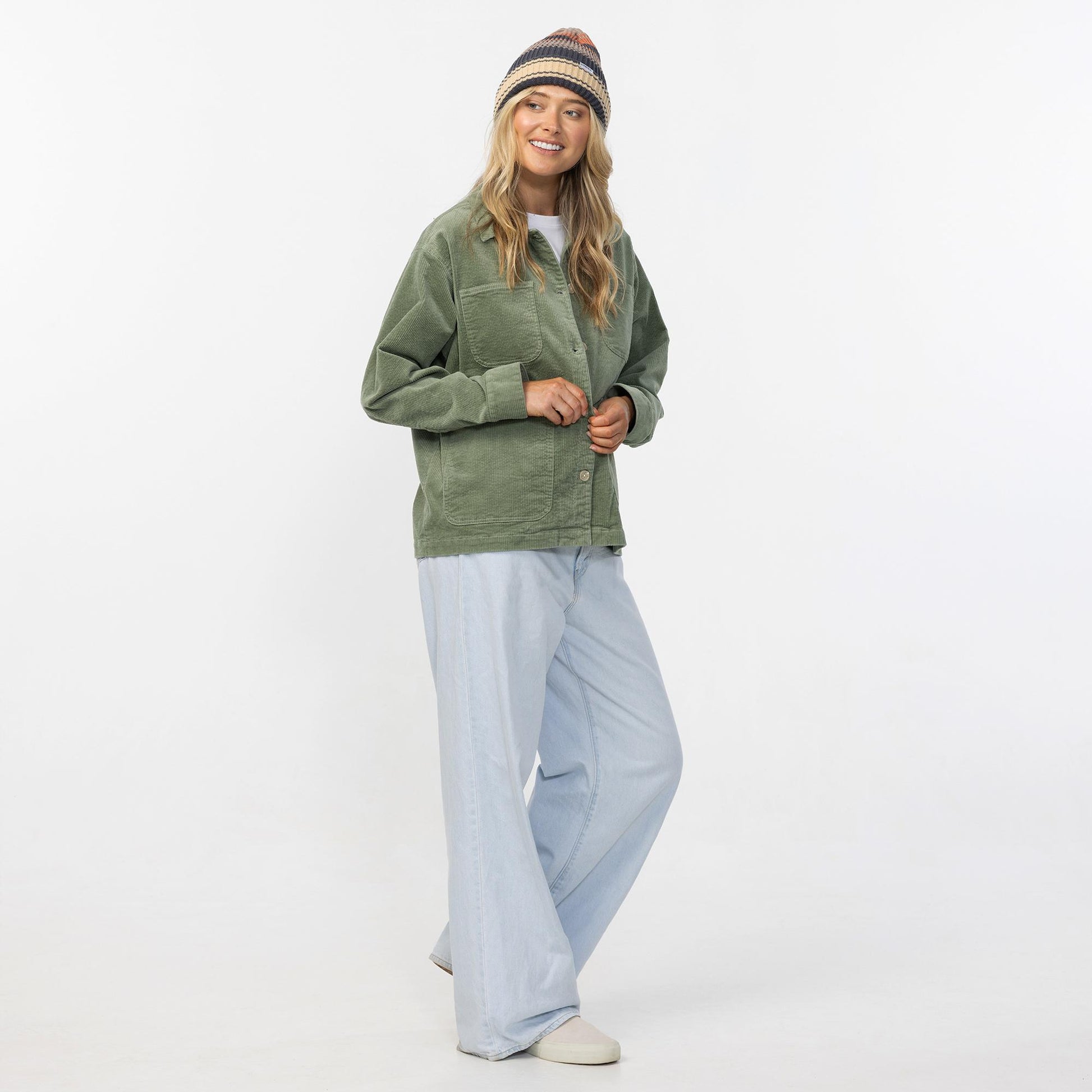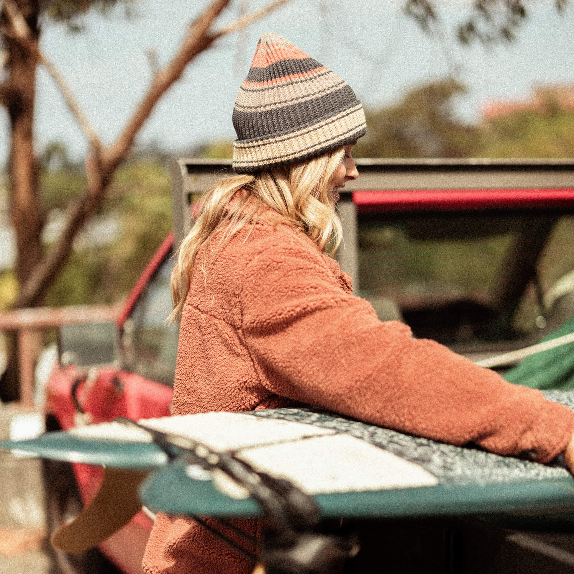Women's Market Stripe Beanie - Washed Black